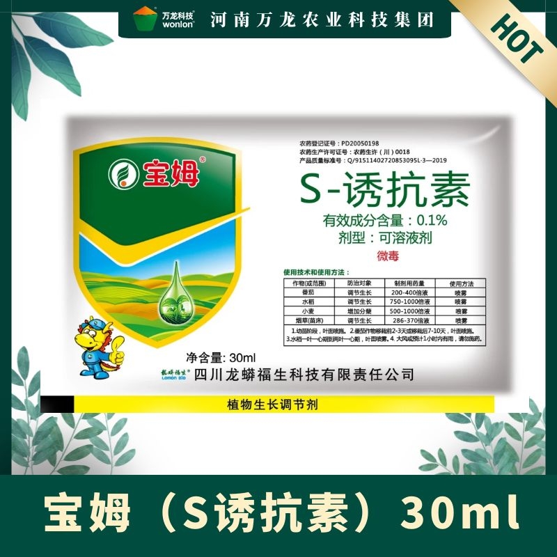 S-诱抗素是一种天然植物生长调节剂,能诱导植物抗逆基因表达,提高植物生长素质,有效增强植物抗逆能力。本品能提高植物光合效率,促进植物协调生长,增加营养物质的吸收和积累,对改善品质,提高产量有显著效果。施用本品能促进幼苗根系发育,移栽后返青快、成活率高,且植物整个生长期的抗逆性得到增强。